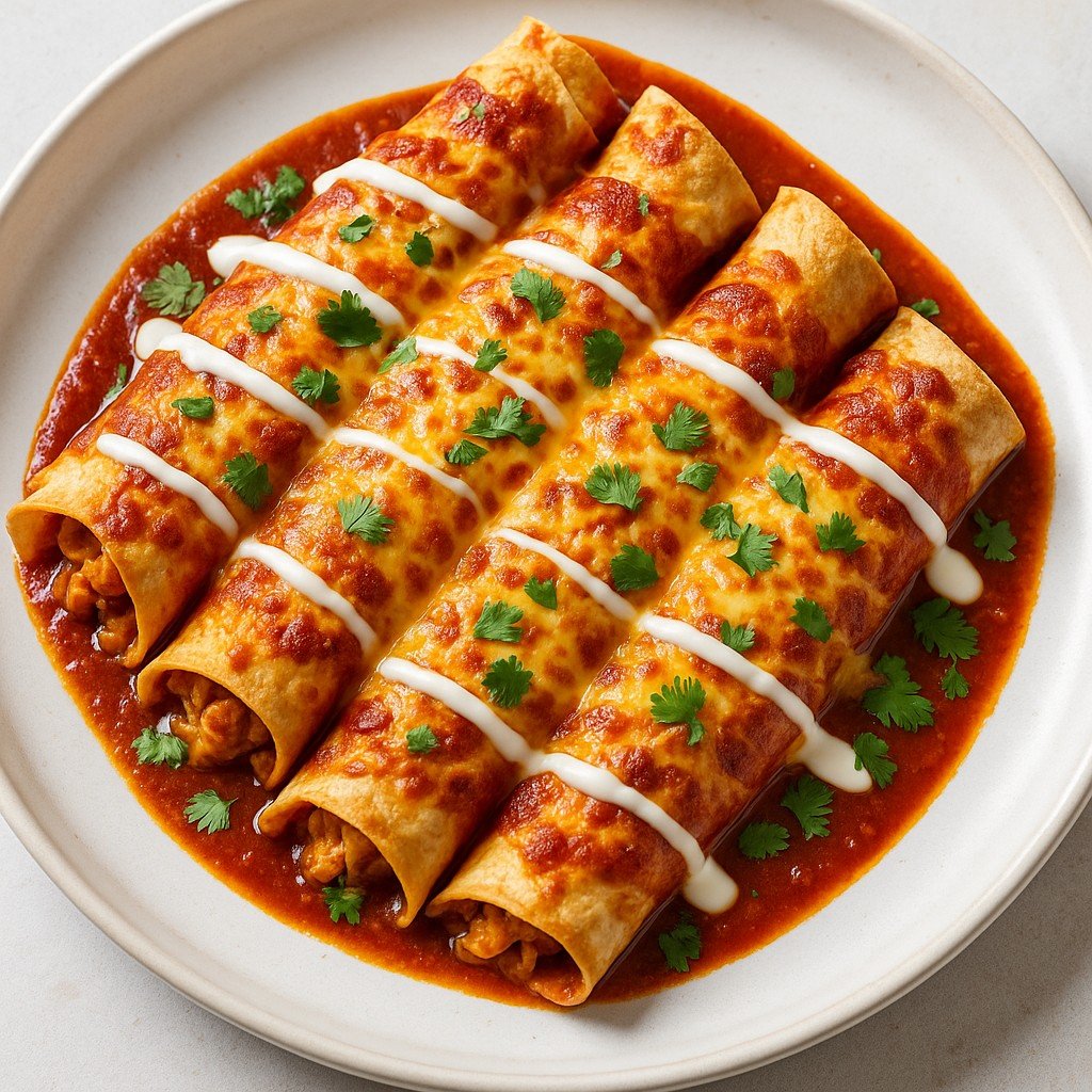 These easy spicy chicken enchiladas are made for you β cheesy, zesty, and oven-baked to perfection. A bold, crowd-pleasing weeknight